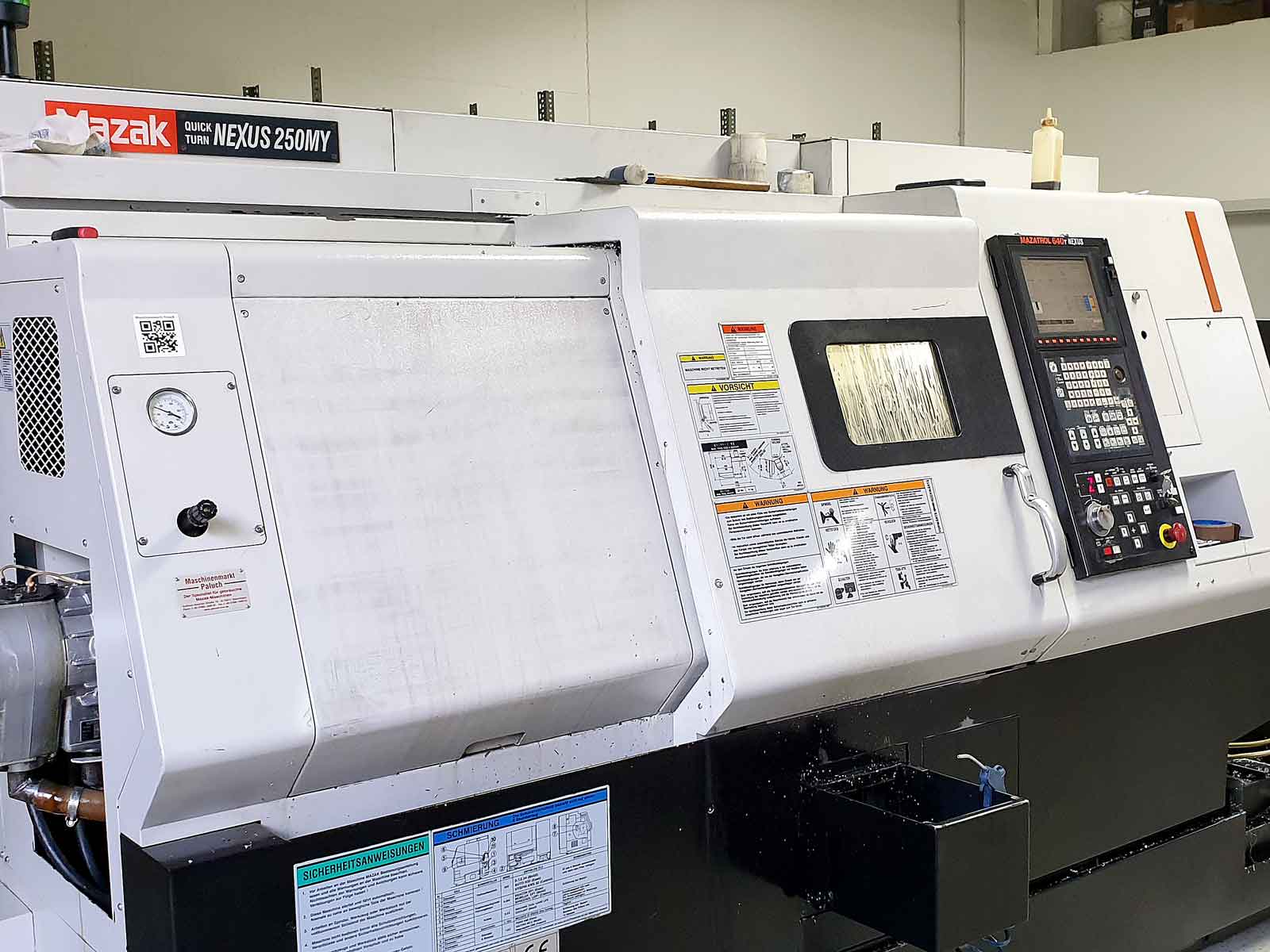 MaschinenPARK (c) Titel-Bild: GROB-WERKE GmbH & Co. KG Unser Maschinenpark – High-End und zahlreich für höchste Ansprüche unserer Kunden. 5-ACHS UNIVERSAL-BEARBEITUNGSZENTREN von GROB ( 2 Stück ) Technische Daten: Grob G550 – 5 Achs Bearbeitungszentrum Verfahrensweg: X=800 – Y=1020 – Z=970 Technische Daten: Grob G350 – 5 Achs Bearbeitungszentrum Verfahrensweg: X=800 – Y=1020 – Z=970 UNIVERSAL-Fräsmaschinen von DECKEL MAHO ( 4 Stück ) Technische Daten: Deckel Maho DMU 125 – 5 ACHS Verfahrensweg: X=800 – Y=1020 – Z=970 Technische Daten: Deckel Maho DMU 70VL Verfahrensweg: X=800 – Y=1020 – Z=970 Technische Daten: Deckel Maho DMU 80P Verfahrensweg: X=800 – Y=1020 – Z=970 Technische Daten: Deckel Maho DMU 50V Verfahrensweg: X=800 – Y=1020 – Z=97 UNIVERSAL-Dreh- Fräsmaschinen von MAZAK ( 6 Stück ) Technische Daten: Mazak-Quick-Turn-Nexus-250-MSY Verfahrensweg: X=800 – Y=1020 – Z=970 Technische Daten: Mazak-Quick-Turn-Nexus-250-MY Verfahrensweg: X=800 – Y=1020 – Z=970 Technische Daten: Mazak-Quick-Turn-Nexus-200-M Verfahrensweg: X=800 – Y=1020 – Z=970 Technische Daten: Mazak-Quick-Turn-Nexus-200-M Verfahrensweg: X=800 – Y=1020 – Z=970 Technische Daten: Mazak Quick Turn Nexus 200 Verfahrensweg: X=800 – Y=1020 – Z=970 Technische Daten: Mazak-Super-Quick-Turn-Nexus-200-M Verfahrensweg: X=800 – Y=1020 – Z=970 Schleifmaschine Technische Daten: SAEILO KENT Flachschleifmaschine Verfahrensweg: X=600 – Y=300 – Z=250 Beschriftungslaser Technische Daten: Trumpf Laser SIGN PL2 Besonderheiten: Beschriftungslaser Messtechnik Technische Daten: KEYENCE Modellreihe XM Series Schrumpftechnik Technische Daten: Haimer Power Clamp